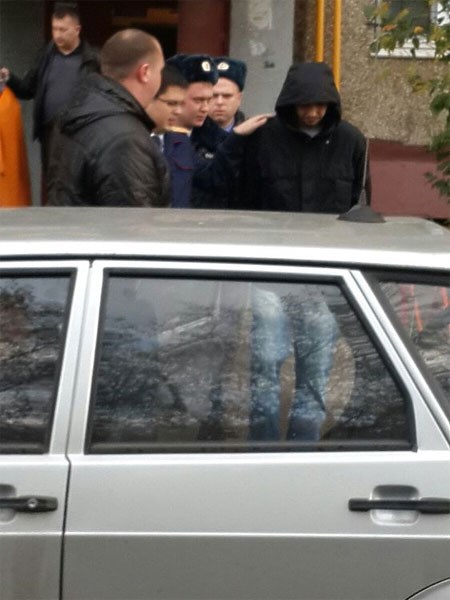 Dmitry (ngoài cùng bên phải) được đưa tới hiện trường để phục vụ việc thực nghiệm điều tra